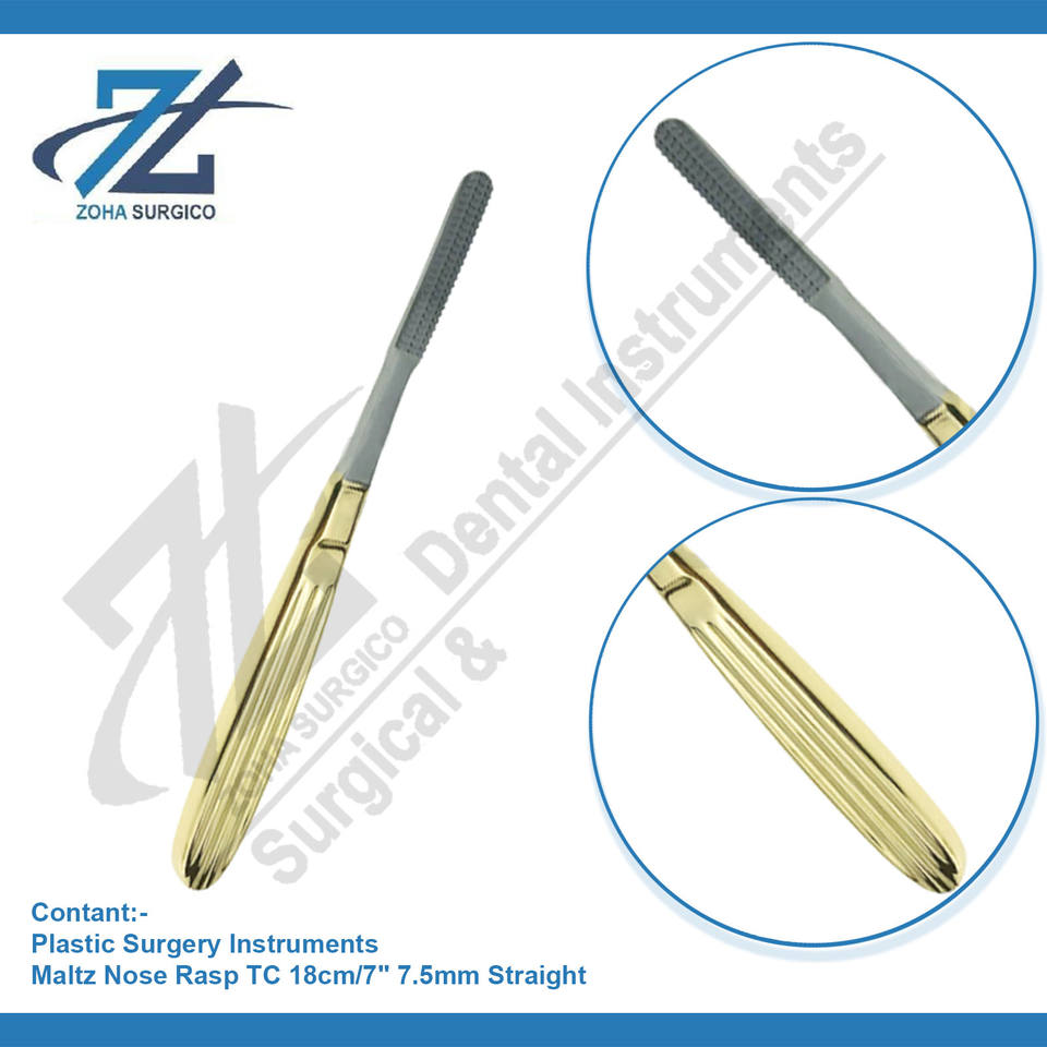 MALTZ Escofina de Nariz TC 18cm/7 "7,5mm Tracción Recta/Corte Hacia Atrás Base de Cirugía Plástica Instrumento Quirúrgico Fabricante Pakistán