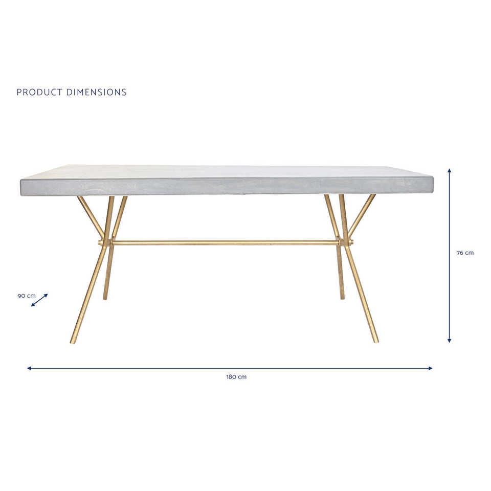 Mesa de Comedor de Madera de Mango y Latón 180x90x76 cm, Color Blanco, Forma de Rombo