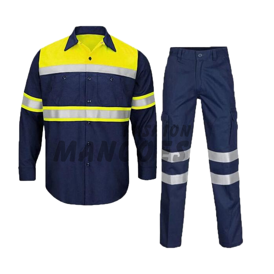 Ropa de Trabajo de Alta Visibilidad de Algodón MANGOES FASHION - Uniforme de Seguridad Reflectante de Manga Larga para Trabajadores de la Construcción y Electricistas