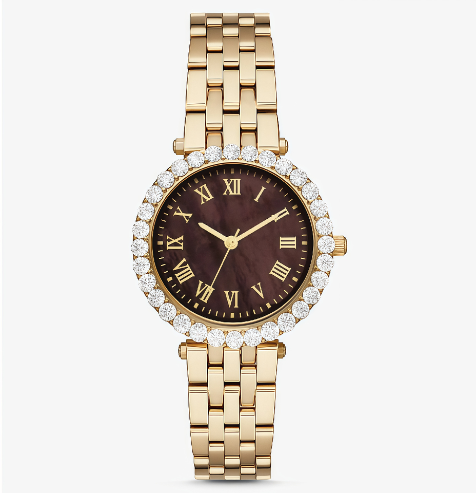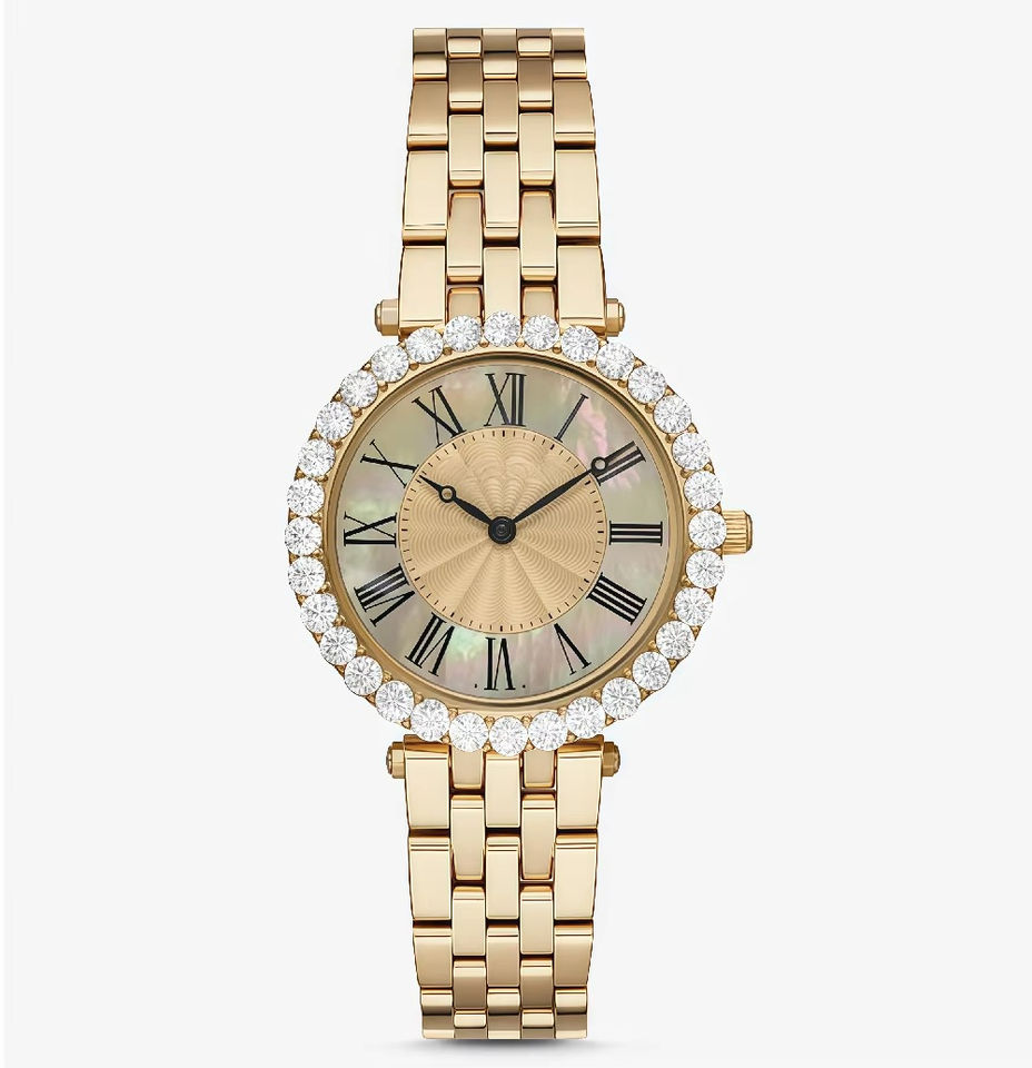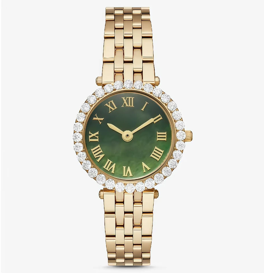 Reloj MAROSERTO con Logotipo Personalizado, Diamantes Engastados, Diseño Simple, Dorado, de Lujo para Mujer