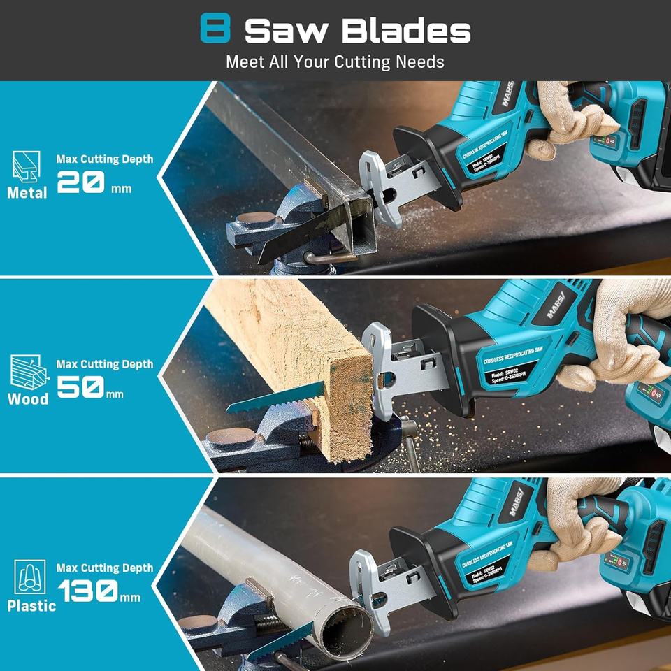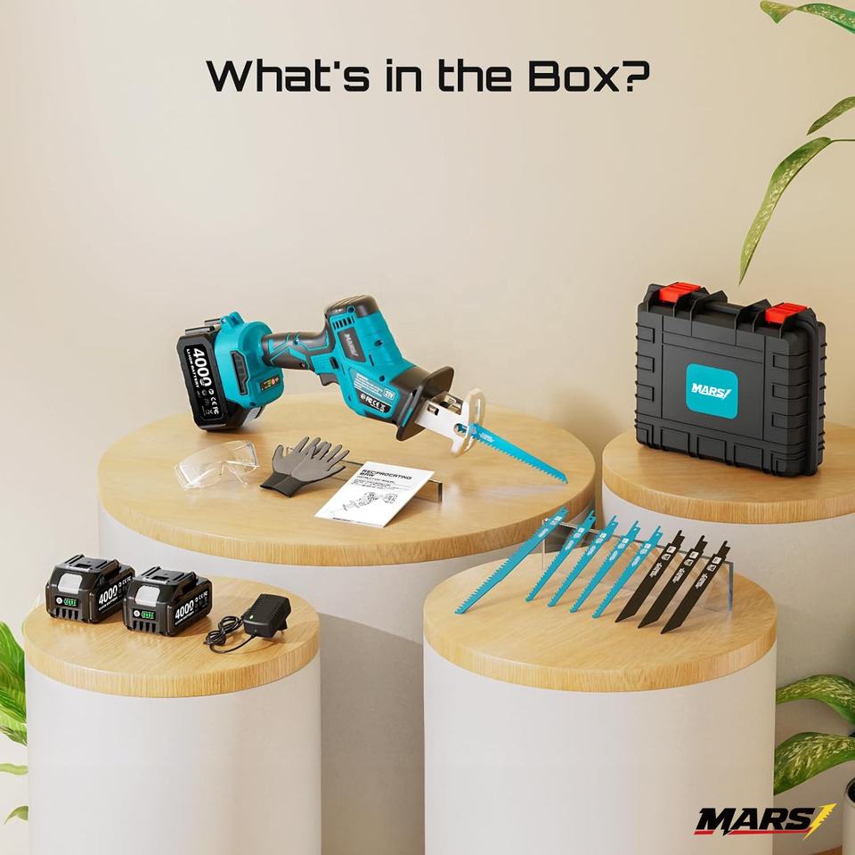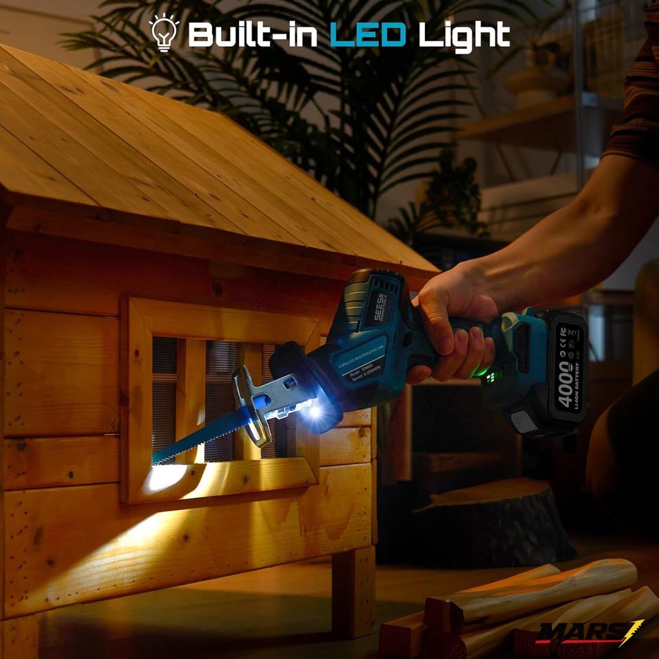 Sierra Recíproca Inalámbrica MARS con Velocidad Variable de 3500 RPM, Motor sin Escobillas, 2 Baterías de 4.0Ah, Luz LED y Cambio de Hoja sin Herramientas