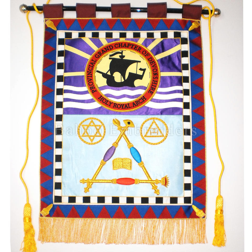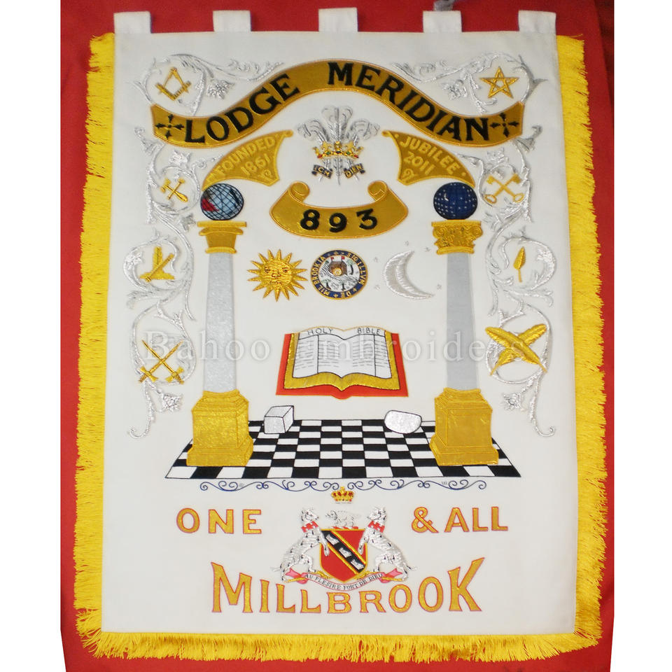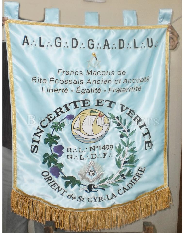 Nombre del producto:BANDERA BORDADA A MANO MASÓNICA
