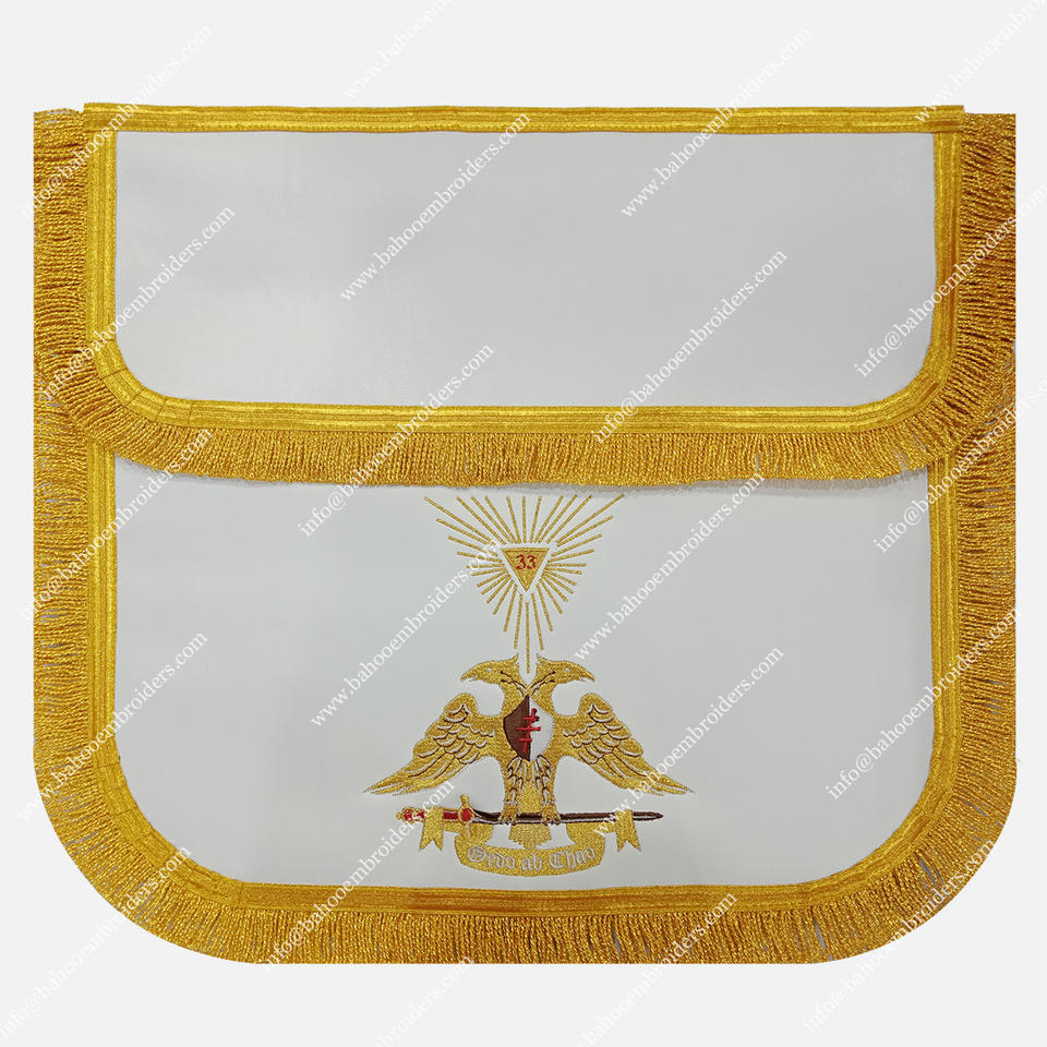 AASR 33 ° grado blanco delantal de cuero bordado a máquina