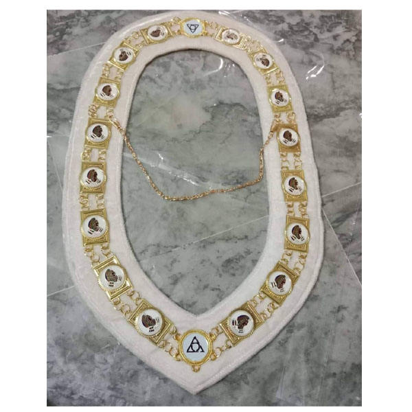 Collar de Cadena Masónico SHRINER'S, Dorado sobre Terciopelo Rojo con Pedrería, Diseño Popular, Económico, Premium, Collar de Cadena Masónico 2025