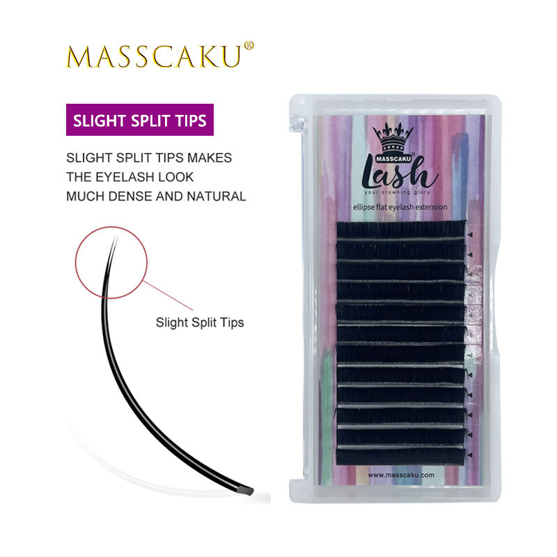 MASSCAKU-extensiones de pestañas planas, elíptica, visón de imitación, volumen más suave, para salón de pestañas Individual y maquillaje, venta al por mayor