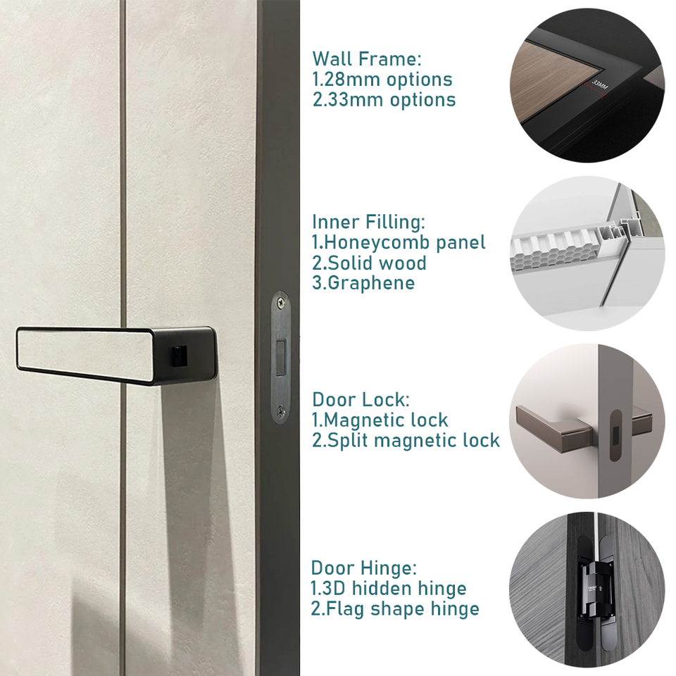 Puerta Secreta Oculta Invisible para Habitación de Hotel MATAI, Moderna, Resistente, con Bisagras Ocultas, Apertura por Empuje, Marco Estrecho, Impermeable