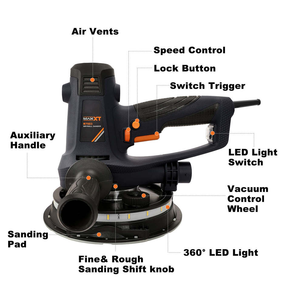 Lijadora Eléctrica para Paneles de Yeso MAXXT 2880W con Luz LED, Aspiradora sin Polvo, Velocidad Variable, para Lijar Paredes, Uso Industrial y Bricolaje, 110V/220V