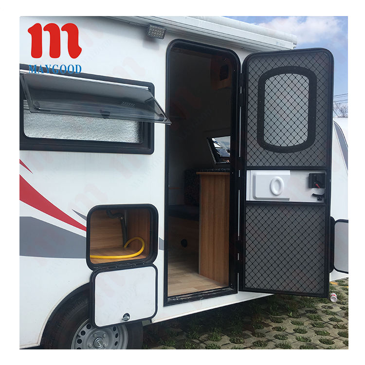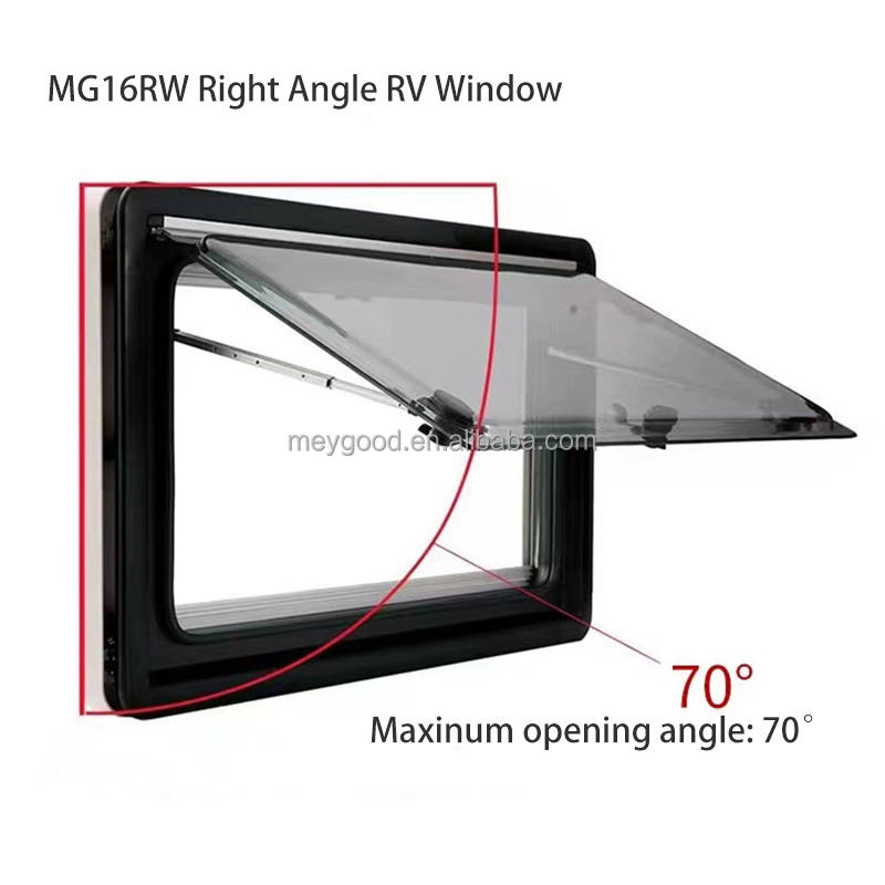 MAYGOOD Venta caliente Ángulo recto Ventana con bisagras RV Autocaravana Caravana Ventanas acrílicas tintadas con cortina Fly Net