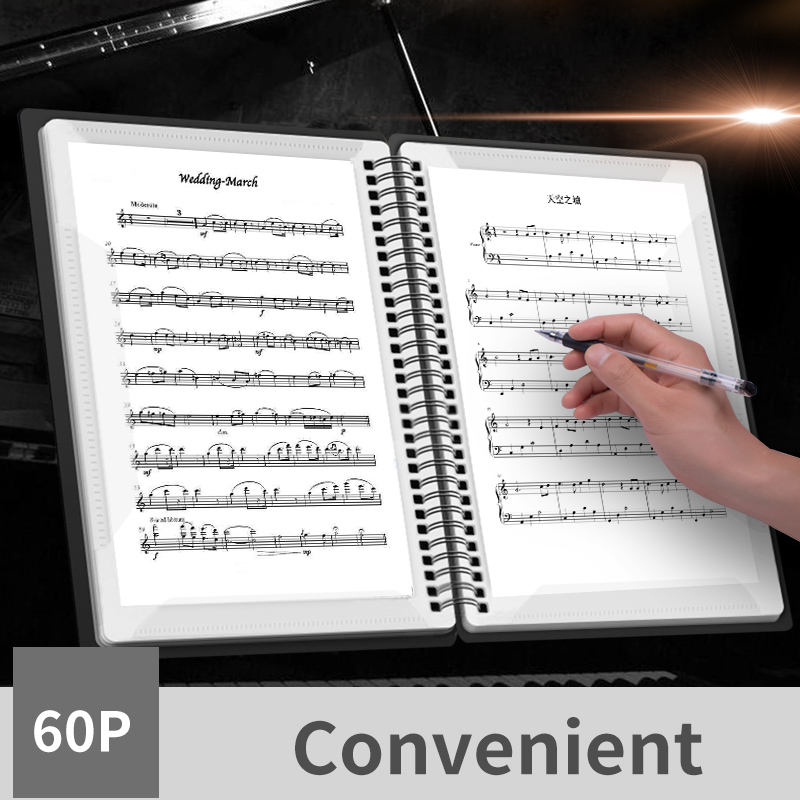 La Carpeta de partituras MB60 Yinyu DDP RTS cuenta con una cubierta de plástico de escritura directa y 60 páginas de tamaño A4 para actualizaciones de partituras sin esfuerzo