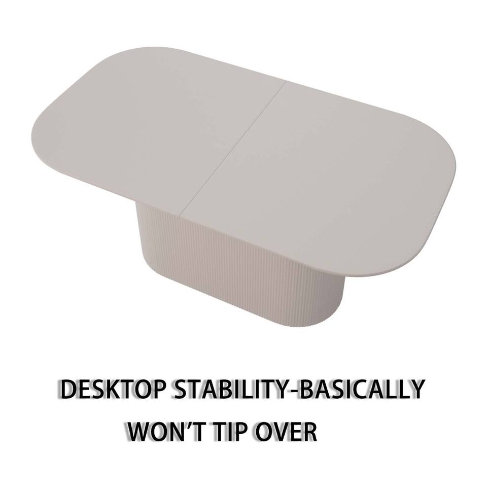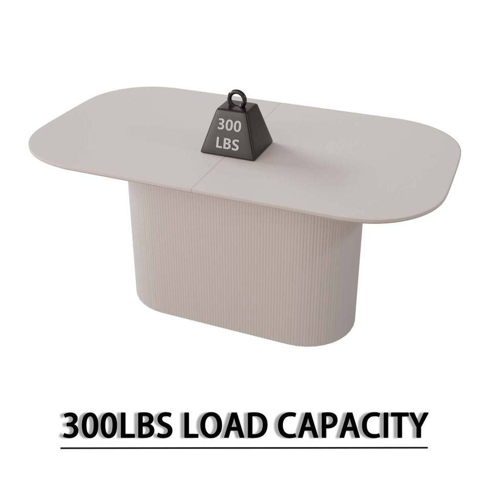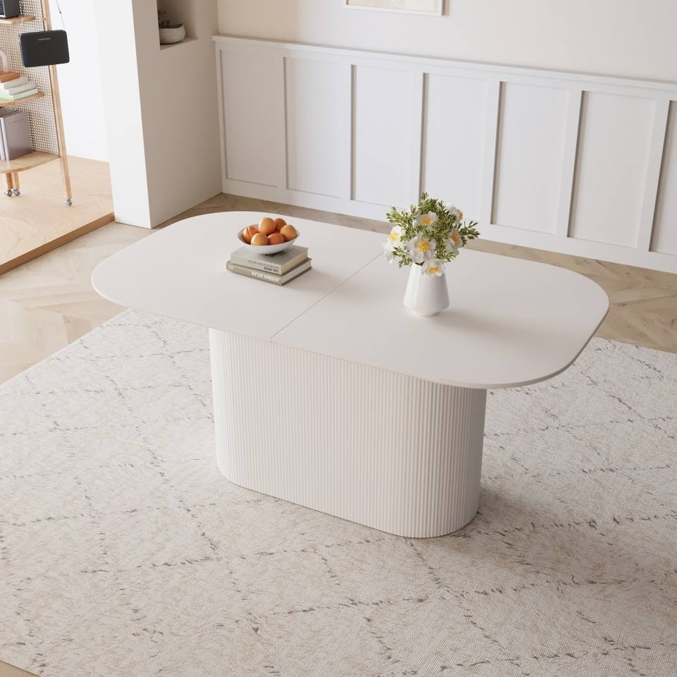 Mesa de Comedor de Estilo Crema, Ecológica y Duradera, de MDF, para 4-8 Personas, Patas con Rayas Verticales, Gruesa y Elegante, para Cocina y Hogar