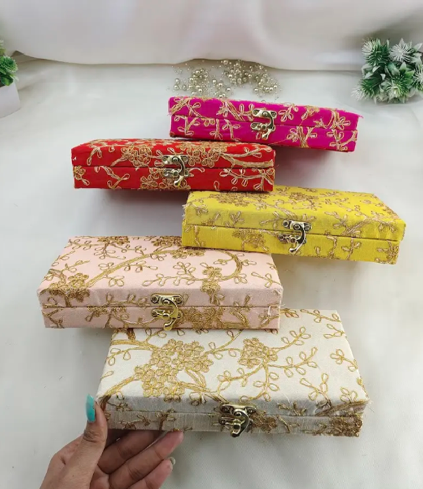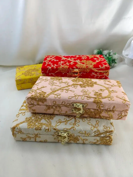 Nombre del producto:Caja de regalo dorada del bordado del MDF para los regalos de vuelta de la joyería y de la boda