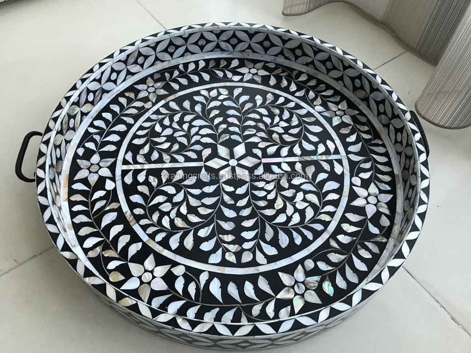 Mesa de Centro Decorativa de MDF Hecha a Mano, Ecológica, Pulida, con Tema Budista, Bandeja Redonda para Servir, Otomana con Cuentas, para el Hogar