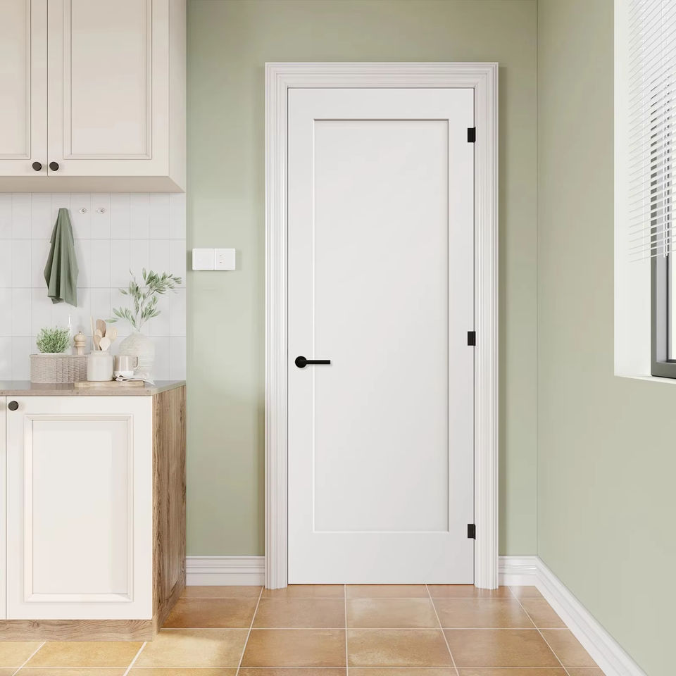 Puerta de Madera Estilo Shaker de MDF, Imprimada en Blanco, Interior Moderno para Dormitorio, 30x80 Pulgadas, Núcleo Hueco, Moldeada, Insonorizada, para Villa u Hotel