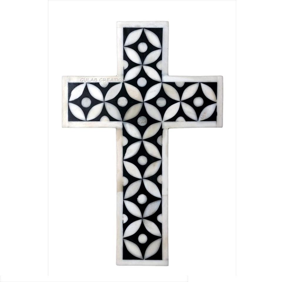 Cruz colgante de pared con incrustaciones de hueso azul y MDF con diseño de Cristo, decoración cristiana religiosa para el hogar para uso espiritual y decorativo