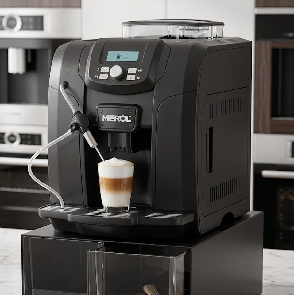Cafetera Espresso ME-715 Merol ME 815 Totalmente Automática, Doble Caldera, Acero Inoxidable, Comercial y Doméstica, con Sistema de Agua Automático y Espumador de Leche