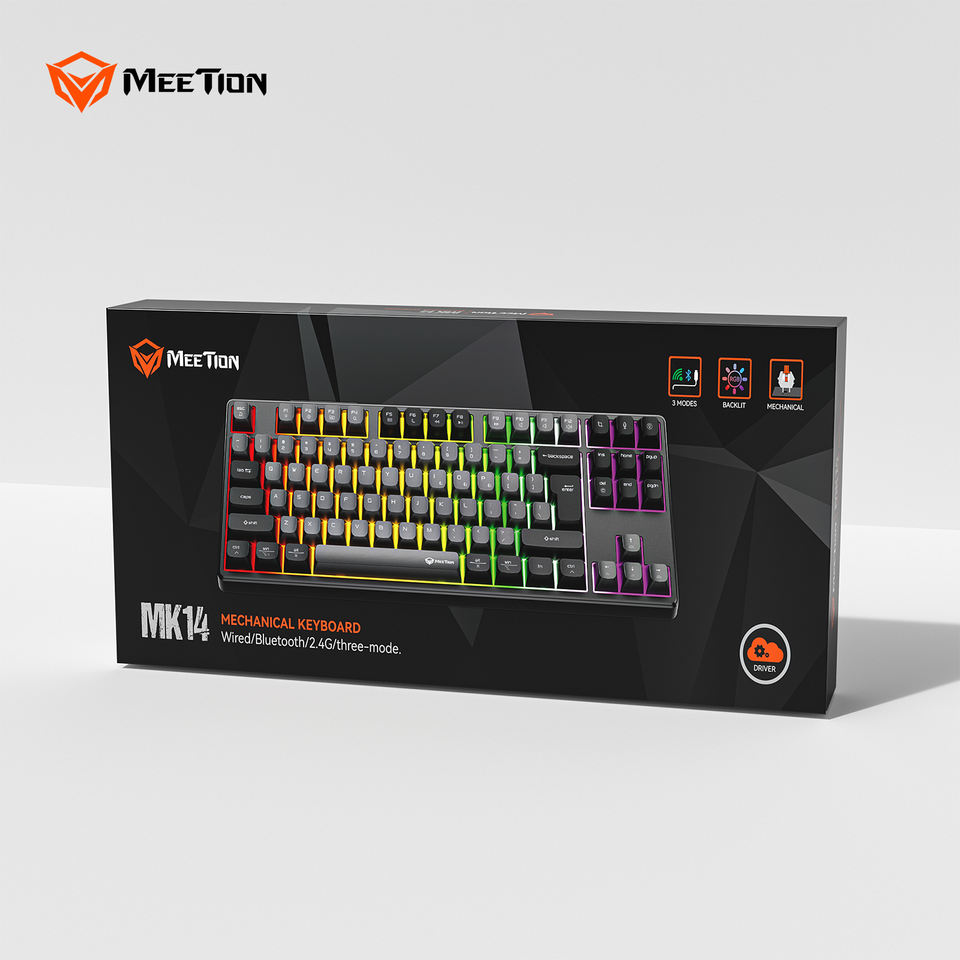 MEETION-Interruptores mecánicos retroiluminados RGB para juegos, teclado de 87 teclas, periférico, inalámbrico, para juegos, MK14