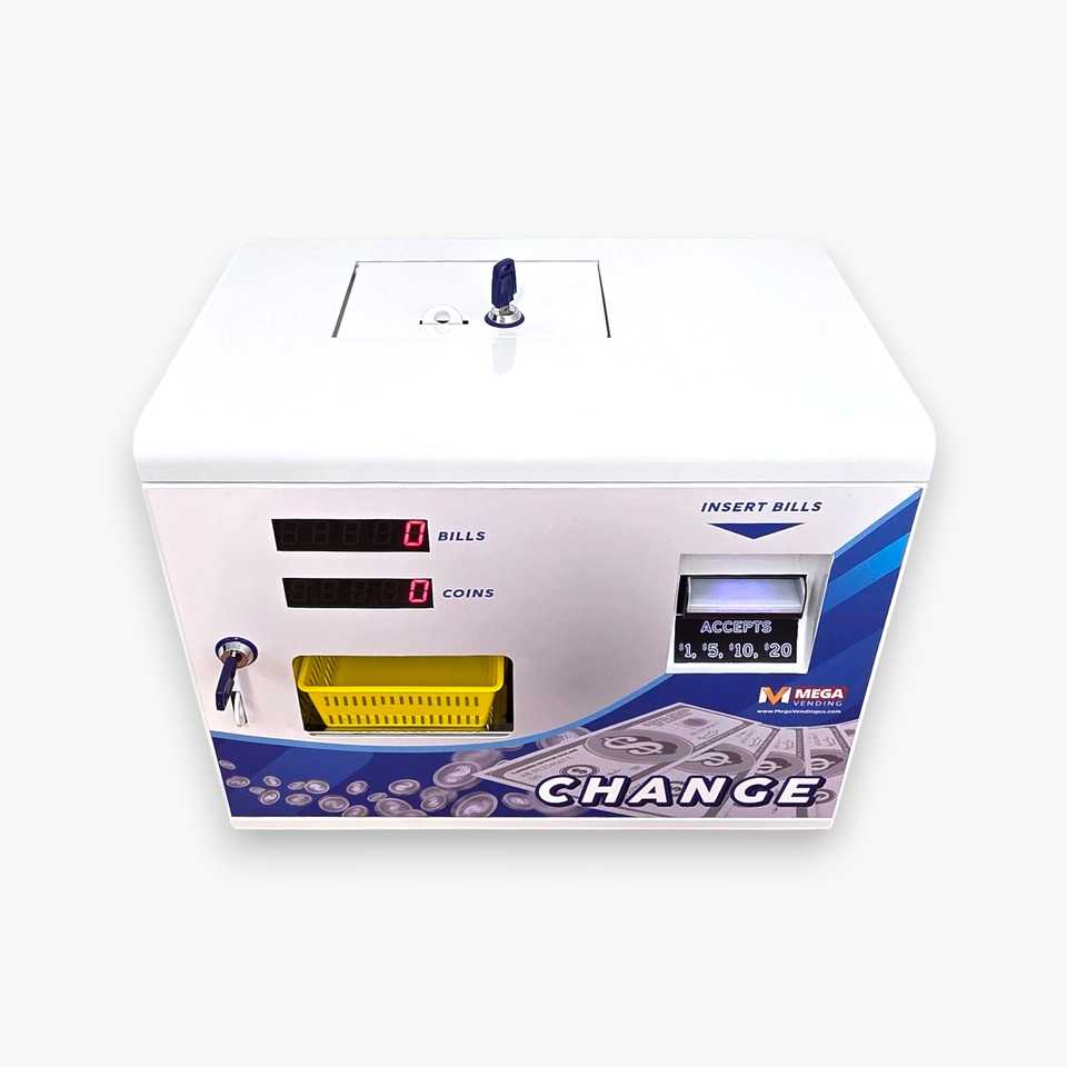 MEGA VENDING MV-101AW Cambiador de Monedas/Token de Carga Frontal para Arcade, Convierte Billetes a Monedas, Gabinete Blanco ~600 Piezas/Min
