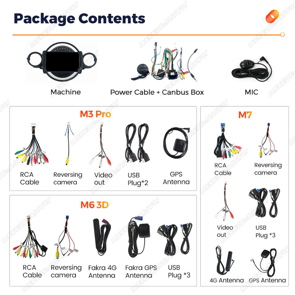 Usb, Tarjeta SD, 3G/4G tarjeta Sim, Construido en WiFi, Packaging Box+Instruction manual, Machine, Power Cable, MIC, RCA Cable, Reversing camera, USB Plug x2, GPS Antenna, Fakra 4G Antenna, Fakra GPS Antenna, BTConexión