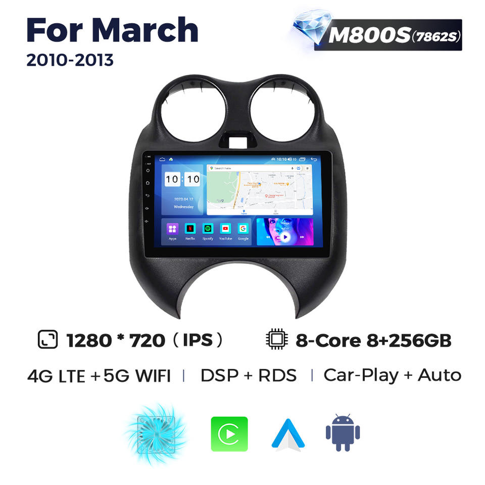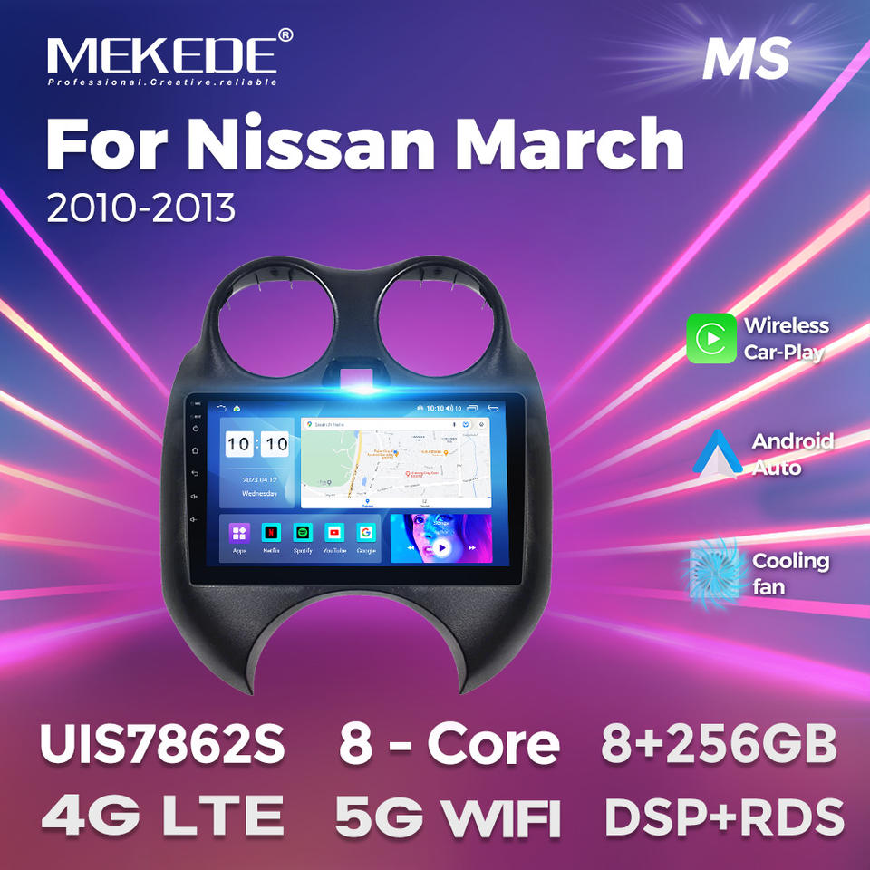 MEKEDE MS Android 8 Núcleos Pantalla Táctil 8+256G Navegación GPS para Nissan March 2010-2013 DSP Video para Auto BT Estéreo Ventilador de Refrigeración