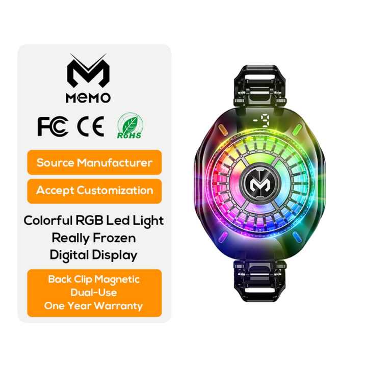 Enfriador de Teléfono MEMO CX10 con Tres Estilos Diferentes, Clip Magnético Trasero, Pantalla Digital, Luz LED RGB Pro para Juegos Móviles