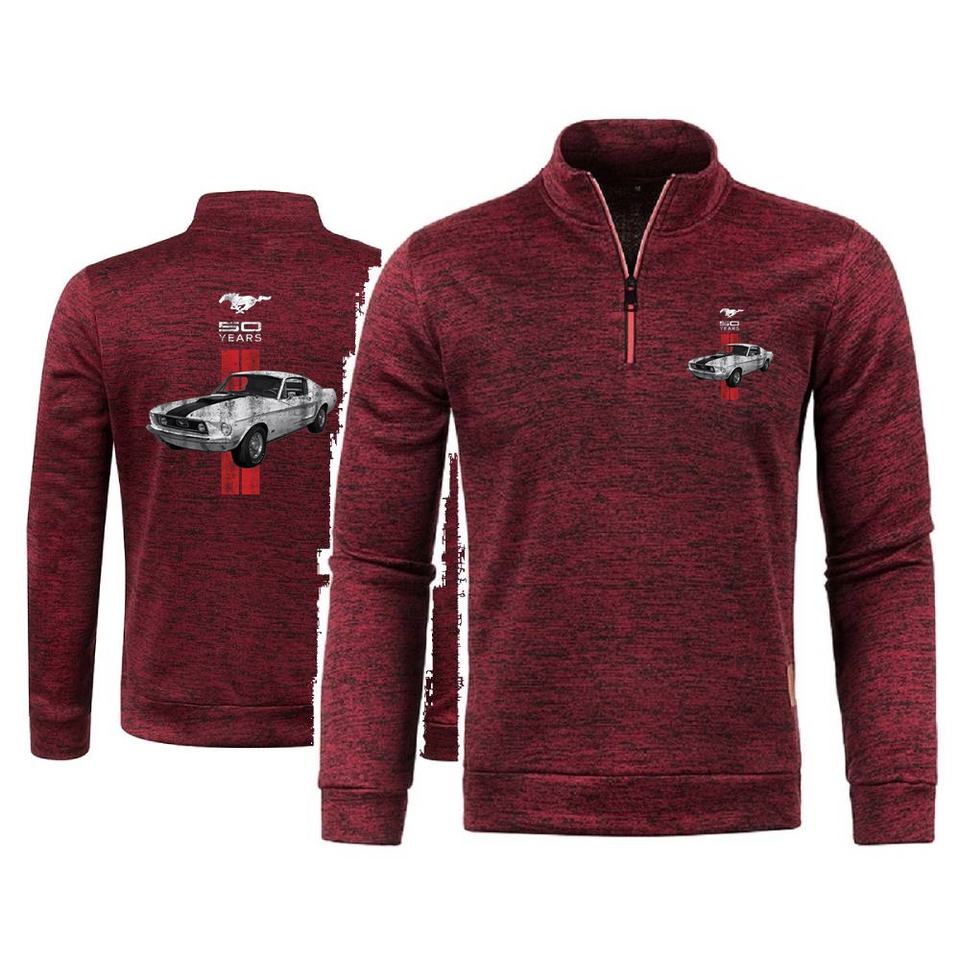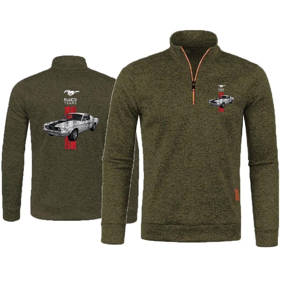 Hombres con capucha Ford Mustang Tops jóvenes Mustang 50 años clásico coche Logo hombres pulóver suéter media cremallera polar pulóver