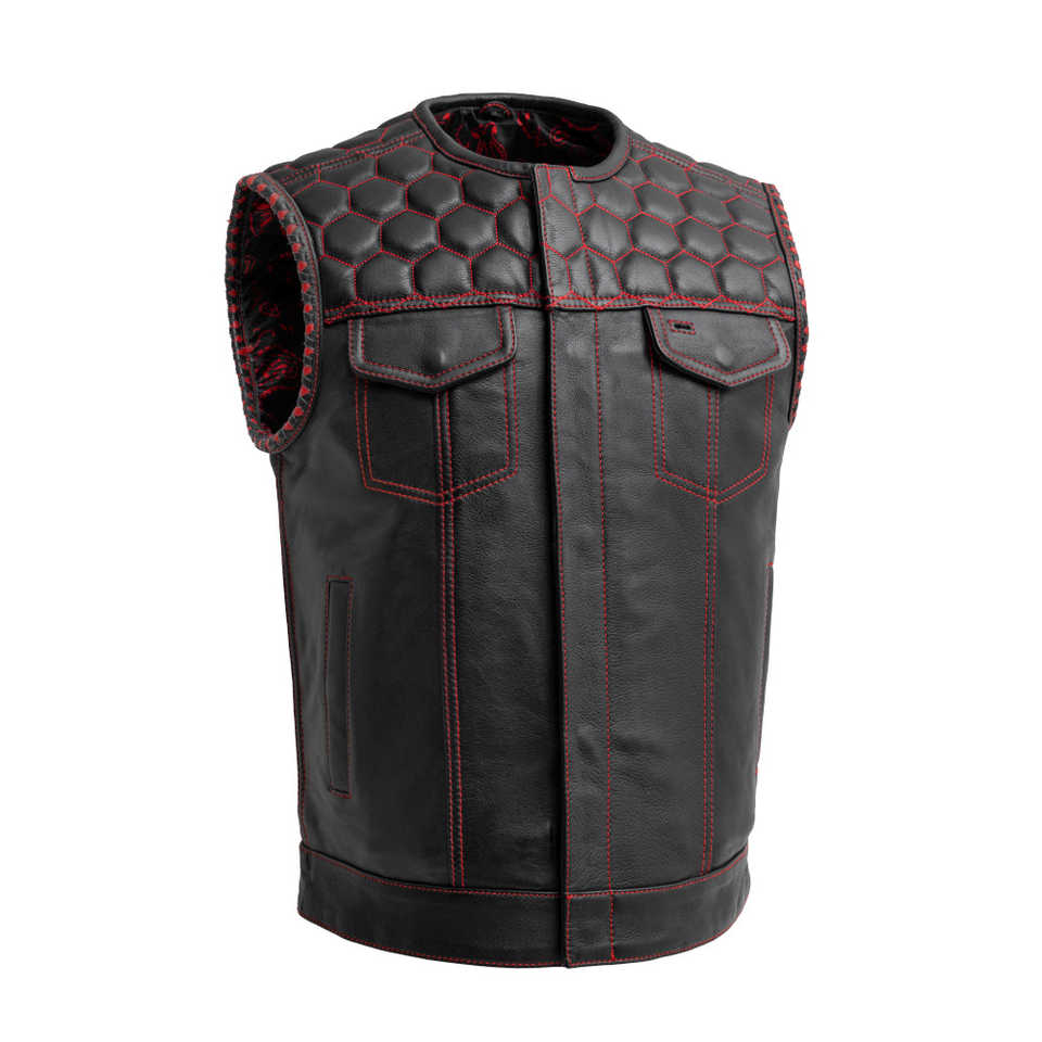 Product name:Mens Reaper Club Vest Diamond Quilted Leather Biker MC