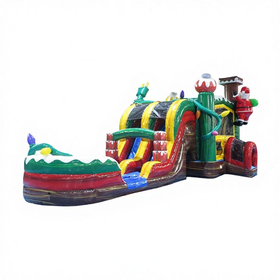 Castillo Inflable Navideño Doble con Tobogán de Santa Claus y Renos, para Fiestas Infantiles, Material de PVC, 500 kg