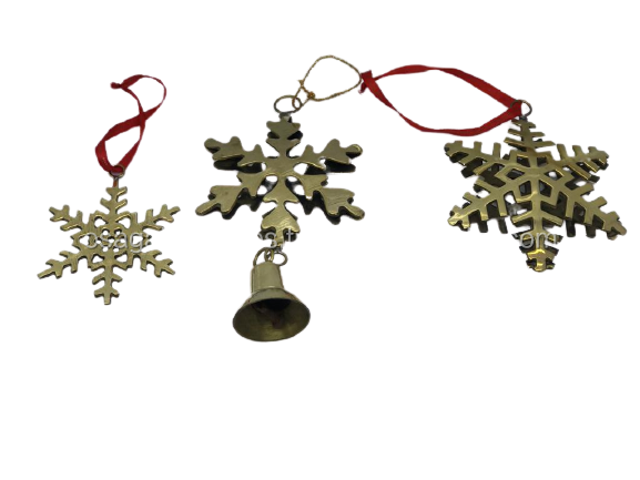 Decoración navideña de METAL y aluminio, adorno colgante de diseño de copo de nieve dorado de alta calidad