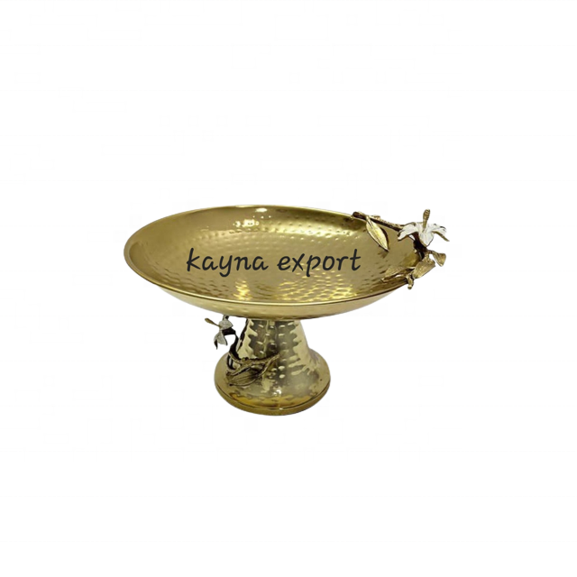 SOPORTE DECORATIVO DE METAL CON DISEÑO DE HOJA CHAPADO EN ORO DISEÑO MARTILLADO SOPORTE DE METAL DORADO ARTESANAL USO PARA EVENTOS Y FIESTAS
