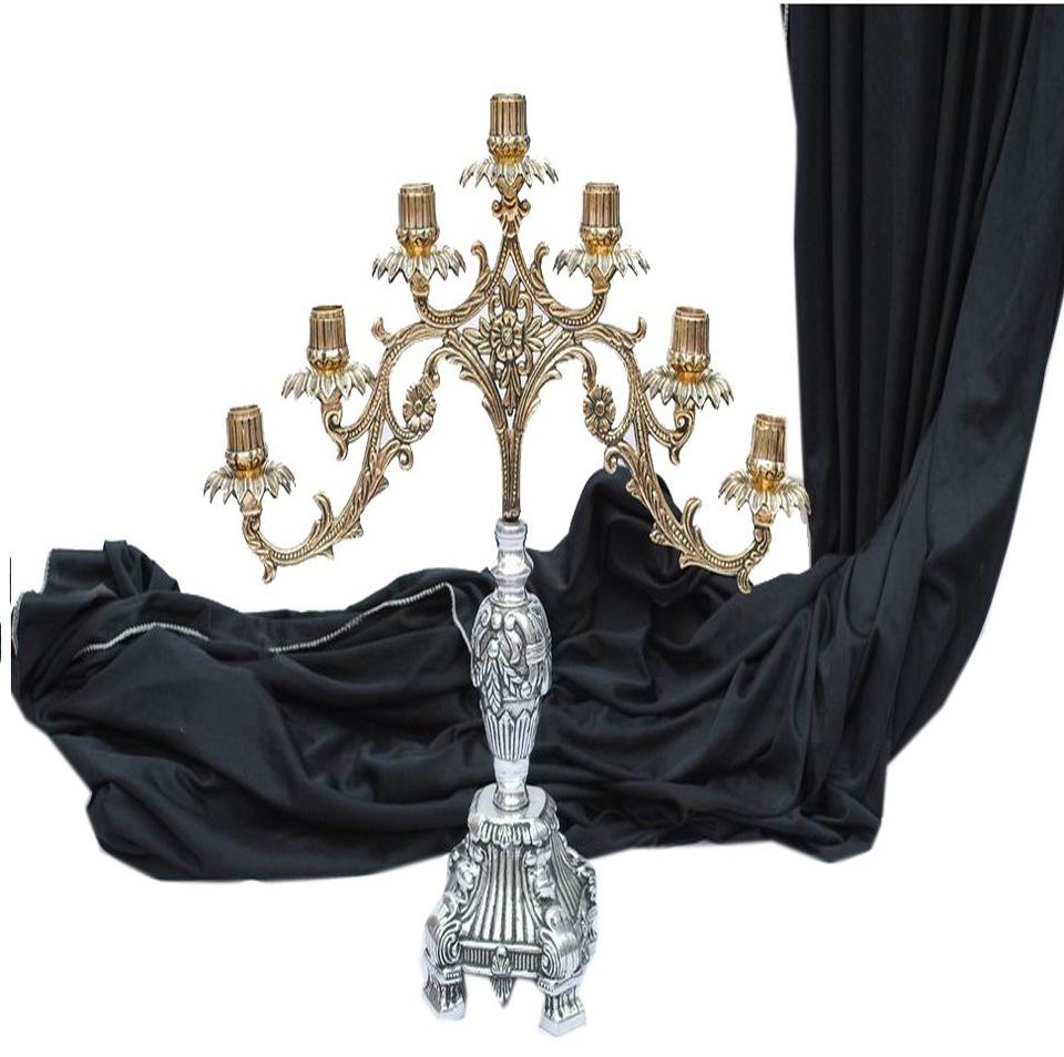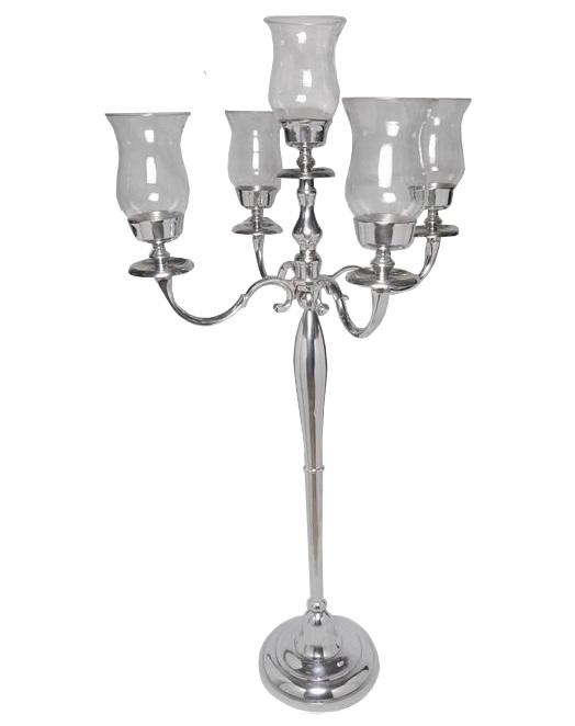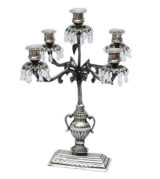 Candelabro de Metal Plateado de Cinco Llamas, Decoración Hecha a Mano para el Hogar