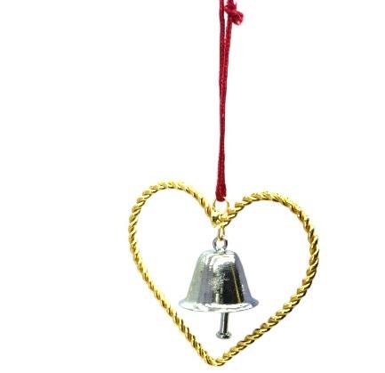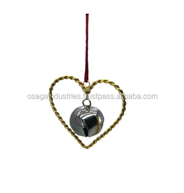 Alambre de METAL de corazón con BELL JINGLE BELL de alta calidad de Navidad ornamento colgante árbol decoración colgante oír con campana