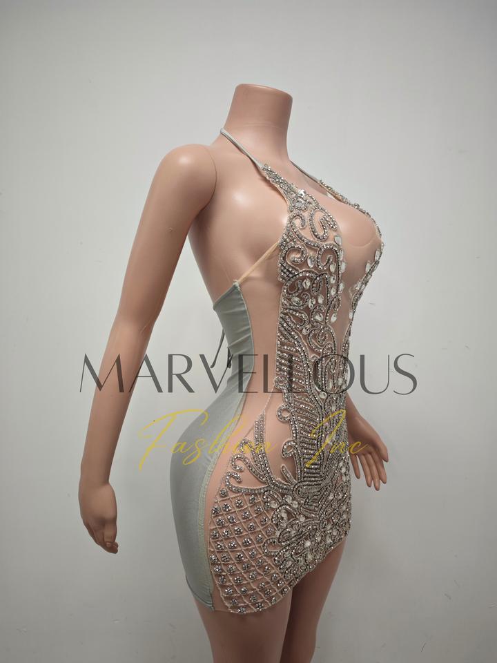Vestido Mini de Fiesta Sexy con Cuentas, Transpirable, de Jersey, con Cuello Halter y Cintura Imperio, Color Dorado AB Personalizado MF