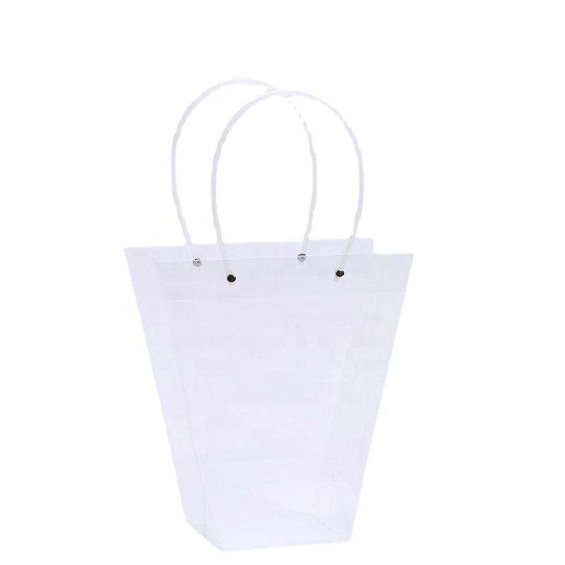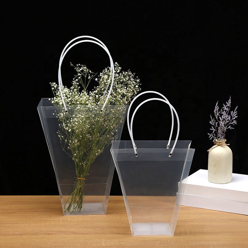 Bolsa de Mano Transparente Trapezoidal con Flores MF-L511, Bolsa de Flores para el Día de San Valentín, Bolsas de Embalaje Transparentes para Floristería