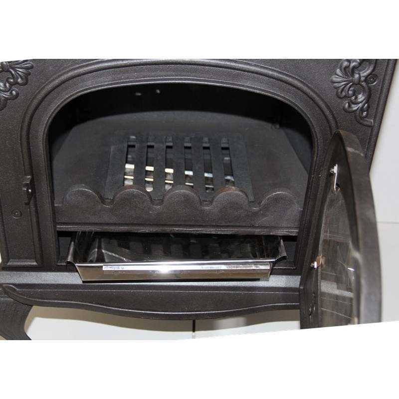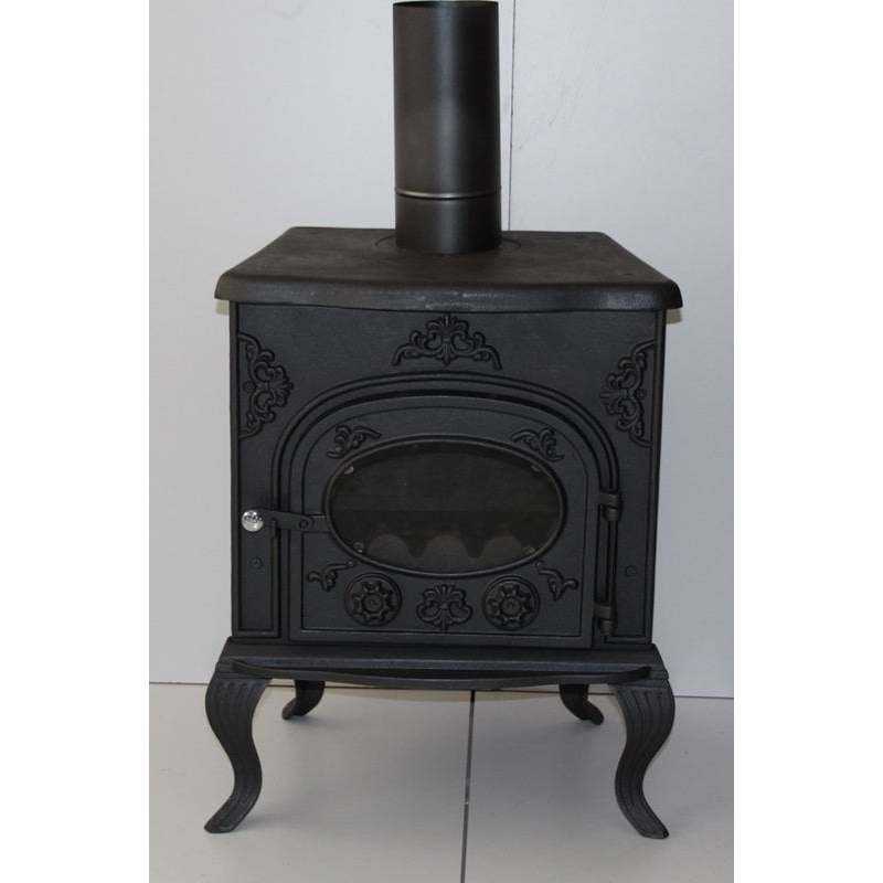 Estufa de leña de hierro fundido modelo MF86, diseño moderno para uso en cocina interior y exterior