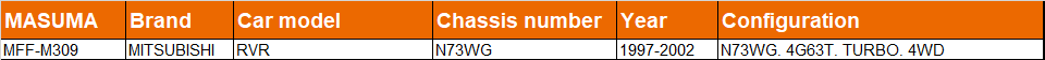 | MITSUBISHI | LANCER VIII Sportback (CX_A) | 2007- | 2,0 Ralliart 4WD (CX4A) |