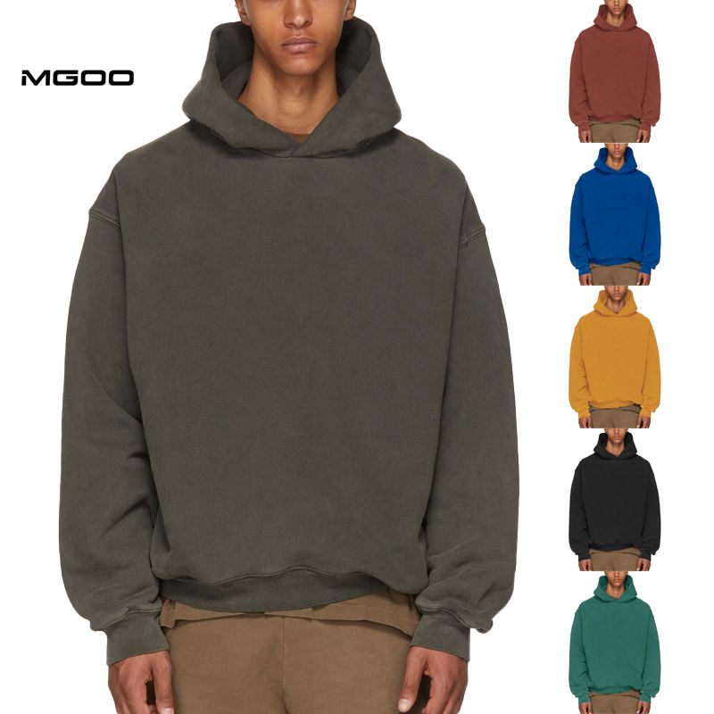 Sudadera con Capucha MGOO Sin Cordones, Tejido Grueso, Lavado Ácido, Felpa Francesa, Súper Oversize, Lisa