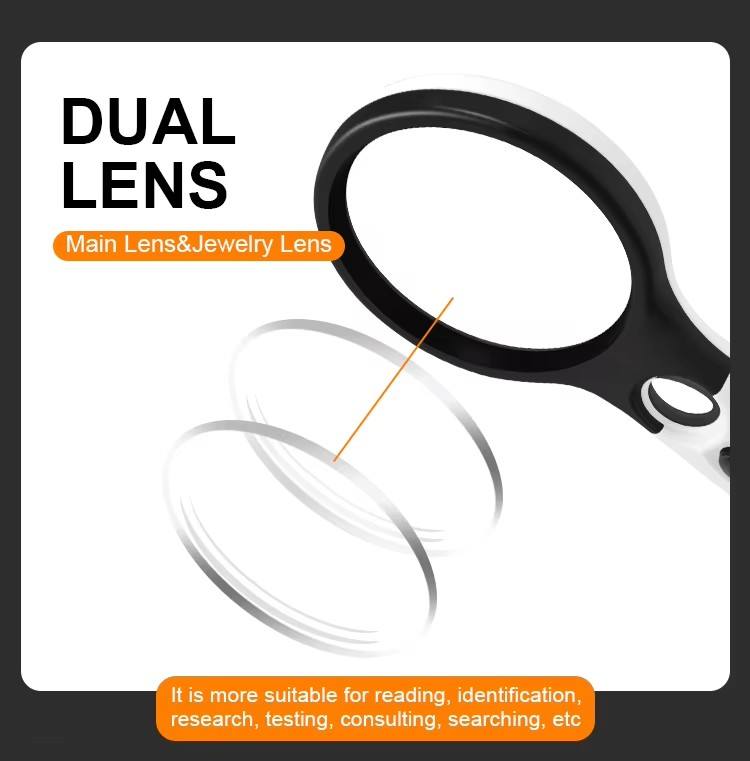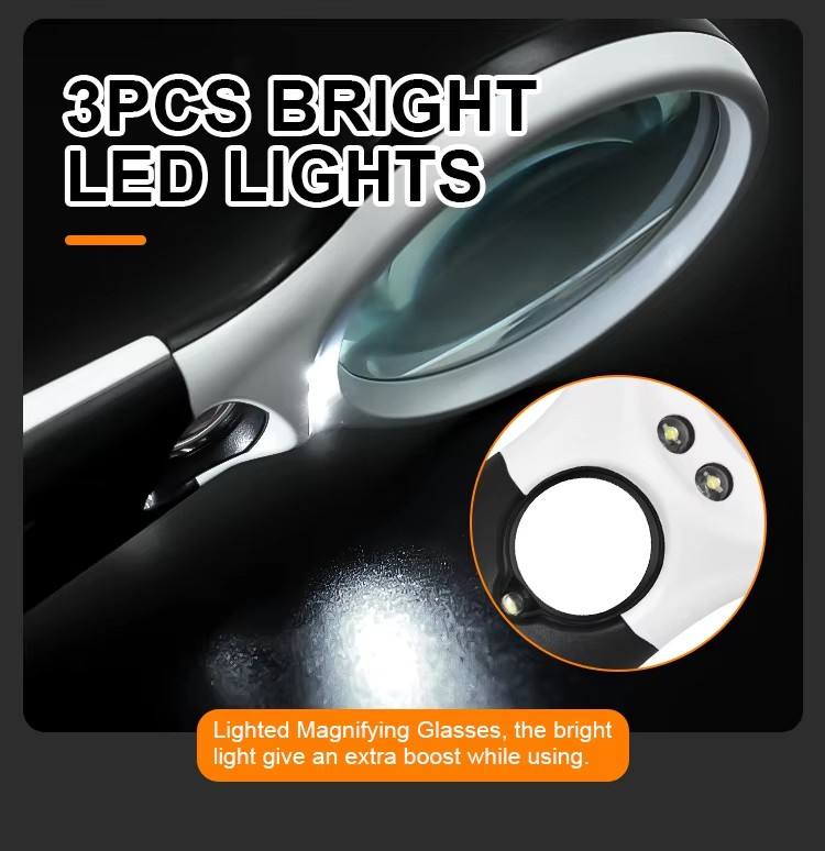 MHK16 Diámetro 2,76 pulgadas Lente principal 3PCS Iluminación LED Lupa de mano de alto brillo Lupa
