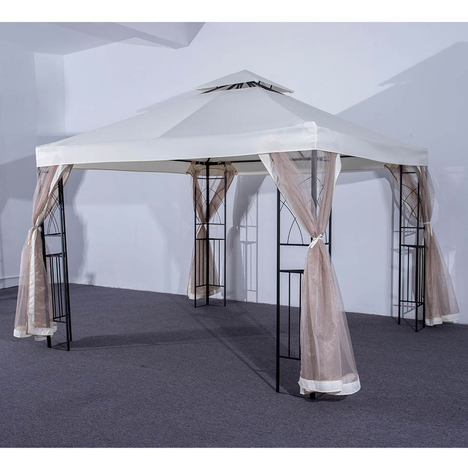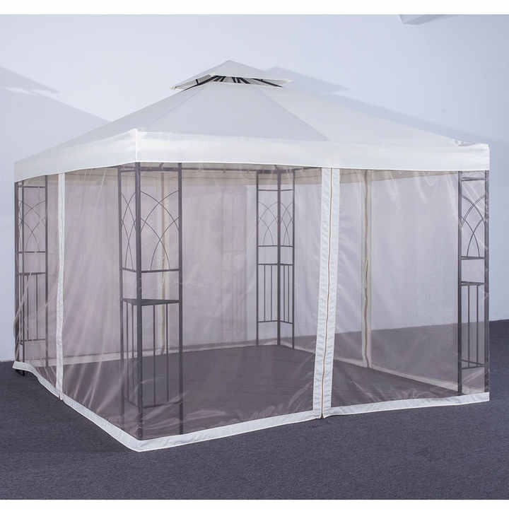 MIA exterior impermeable marco de acero pabellón jardín patio trasero Hardtop hierro 3x3 Gazebo mosquitera cortina a prueba de viento