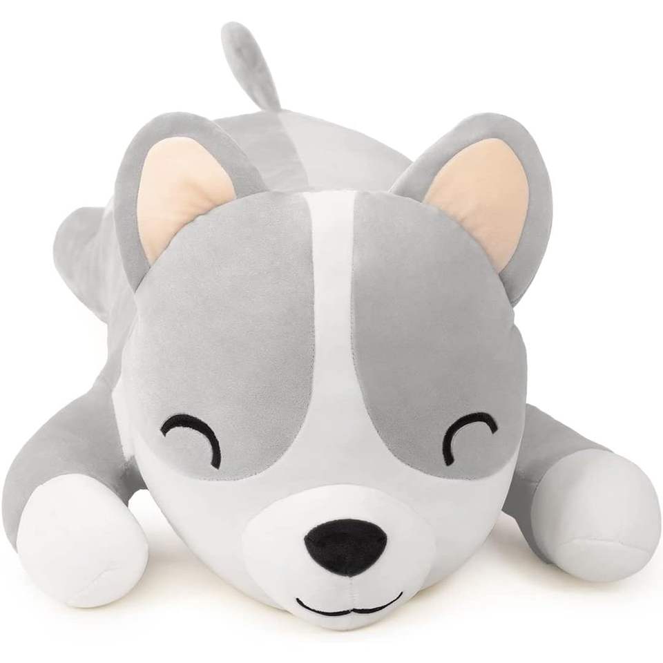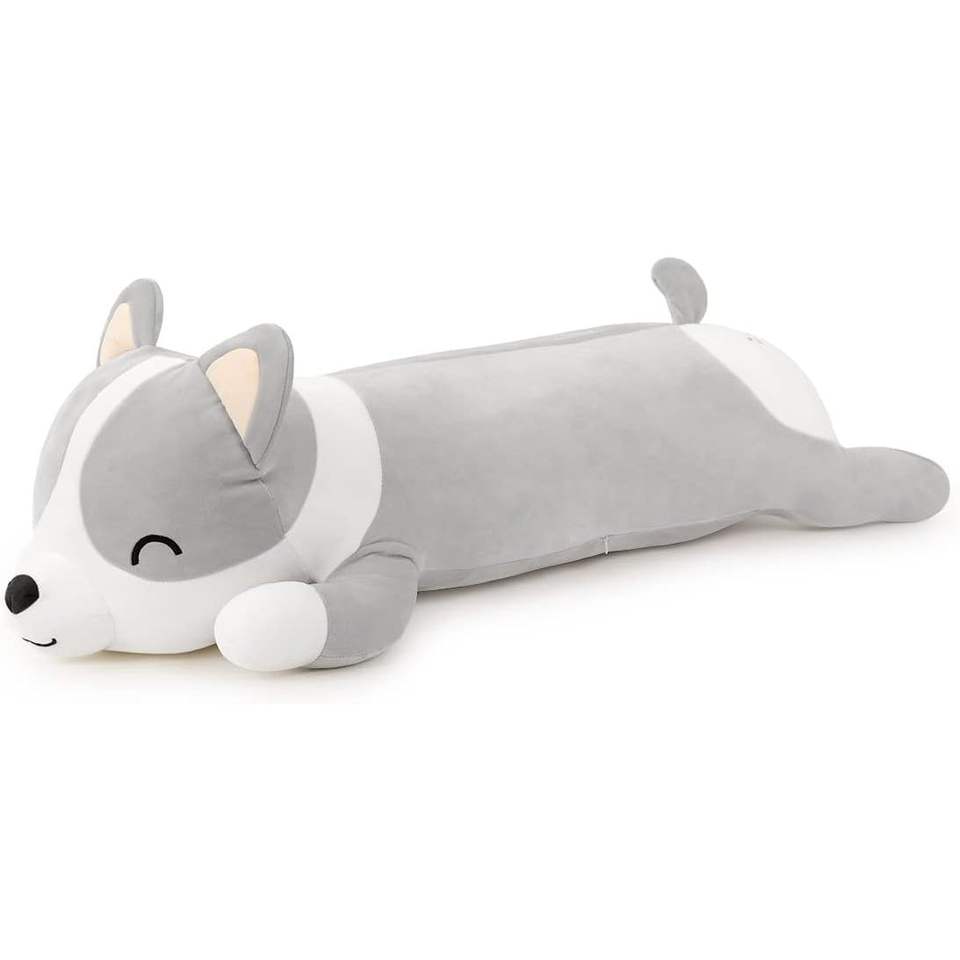 MIAOHAHA lindo suave gris Corgi muñeca largo peluche Animal juguete y almohada regalo para niños y niñas