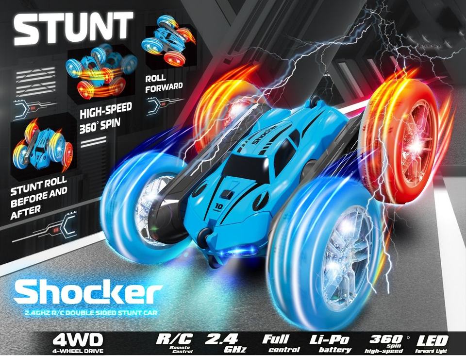 MILI Auto de Acrobacias de Doble Cara con Tracción en las Cuatro Ruedas 2.4G, Juguete de Auto con Luces y Rotación de 360 Grados, Control Remoto