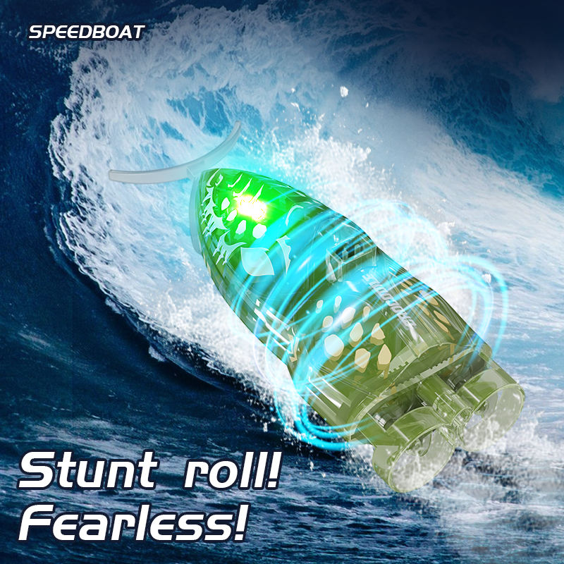 MILI 2,4G Mini RC Boat Shark Toy con efectos de luz de rendimiento de acrobacias de alta velocidad y características de empuje de bola para juegos de agua