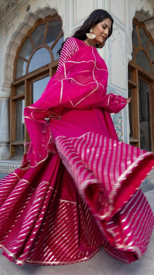 MIMOSA Hermoso Diseñador Mujer Reversible Lehenga Choli Set Rosa Algodón Seda con Encaje Trabajo y Jaal Work Organza Dupatta