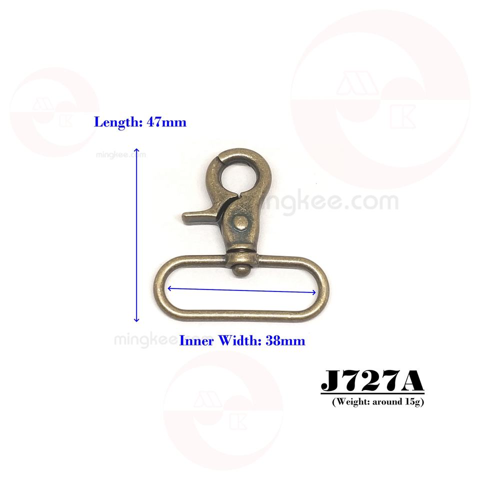 MING KEE METAL - Mosquetón Moderno de Aleación de Zinc de 38 mm, Gancho de Metal para Correas, Garras de Cangrejo, Gancho de Langosta, Accesorios para Bolsos, ISO 9001:2008