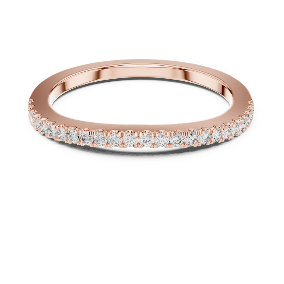 Anillo Minimalista con Diamantes Cultivados en Laboratorio Certificados por Terceros, con Piedras Laterales en Corte, Media Banda, Oro Rosa de 18 Quilates, Chapado en Rodio, para Compromiso o Boda