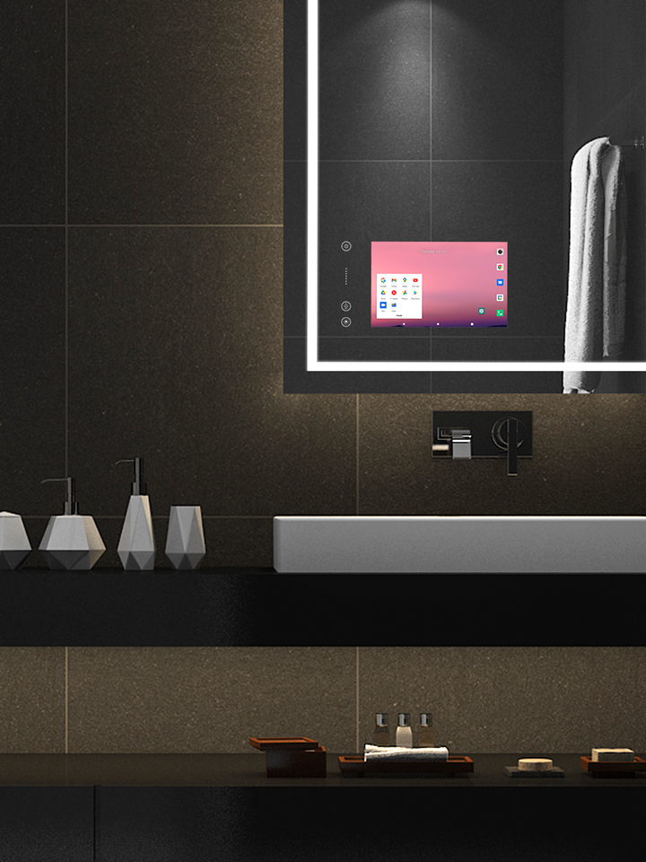 Espejo de Baño Rectangular Inteligente Moderno MIRROH.AI con Iluminación LED, Sistema Operativo Android Integrado, Pantalla Táctil, Bluetooth, WiFi, YouTube