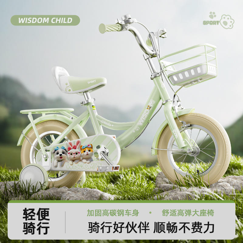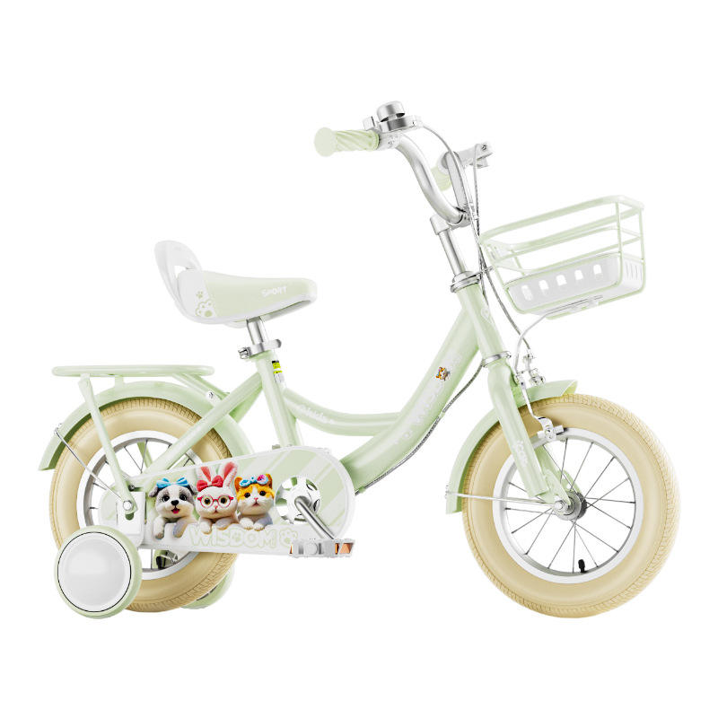 Bicicleta infantil MISBOMO de 16 pulgadas con ruedas de entrenamiento para niñas de 3 a 6 años, bicicleta con cuadro de metal, cesta y diseño de dibujos animados