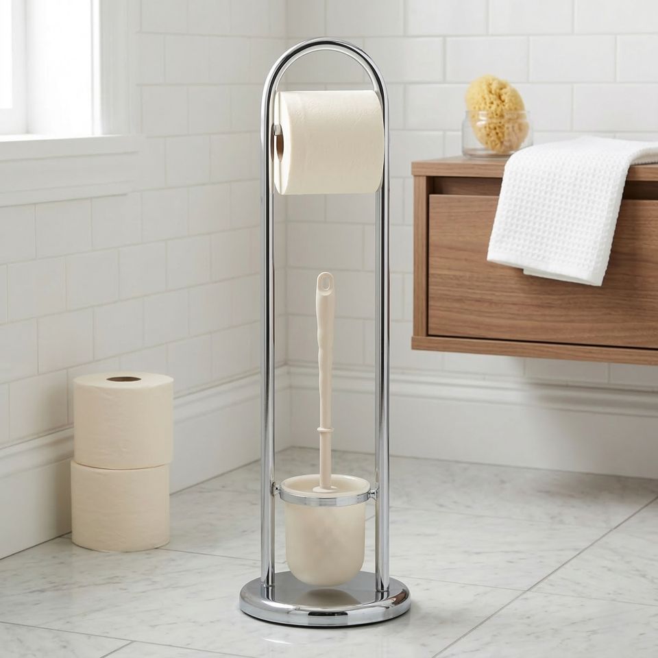 Portaescobillas de Inodoro Independiente de Metal Cromado Moderno y Ecológico de MIT Housewares para Almacenamiento en Hoteles y Hogares, Venta al Por Mayor