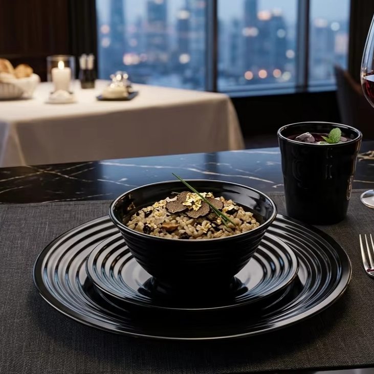 Vajilla Ecológica MIT Precision PGT Moldeada por Inyección: Tazas, Tazones, Cucharas y Platos - Negro