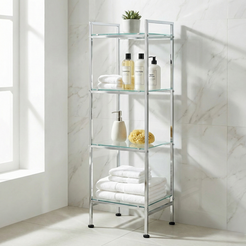 Estante de Hierro Moderno de Tres Niveles MIT, Ahorro de Espacio, Acabado Cromado, Organizador de Baño para el Hogar, Montaje en Esquina, Hoteles, Taiwán