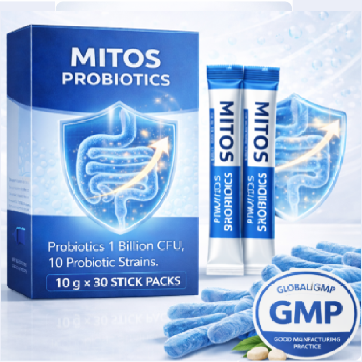 Probióticos para Adultos de Marca Privada MITOS, 10B CFU, 10 Cepas con Prebióticos y Zinc en Polvo | Fabricante OEM con Certificación GMP
